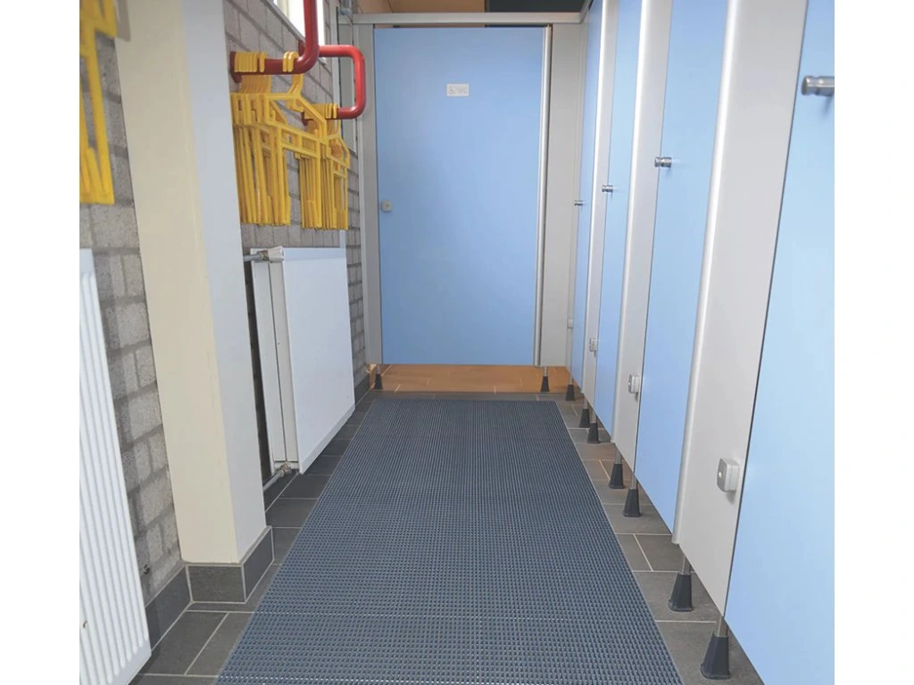 Hygienická rohož z antibakteriálně ošetřeného vinylu určená pro mokré provozy – sprchy, sauny, šatny a okolí bazénů. Zabraňuje růstu plísní, hub a bakterií a díky otevřené drenážní konstrukci rychle vysychá. Pod bosou nohou je příjemně měkká a teplá.