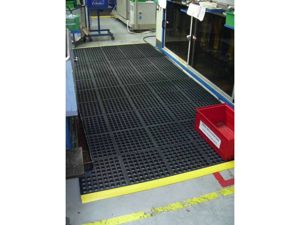Modulární protiúnavová rohož pro náročná průmyslová pracoviště s výskytem průmyslových olejů. Je určená do suchého i mokrého prostředí, pomáhá snižovat únavu při práci ve stoje a díky zámkovému systému ji snadno přizpůsobíte rozměrům každého pracoviště. Otevřená konstrukce s drenážními otvory odvádí kapaliny a umožňuje propadávání abrazivních nečistot. Požární klasifikace Bfl-S1 umožňuje použití i na pracovištích se zvýšenými nároky na požární bezpečnost (např. svařování).