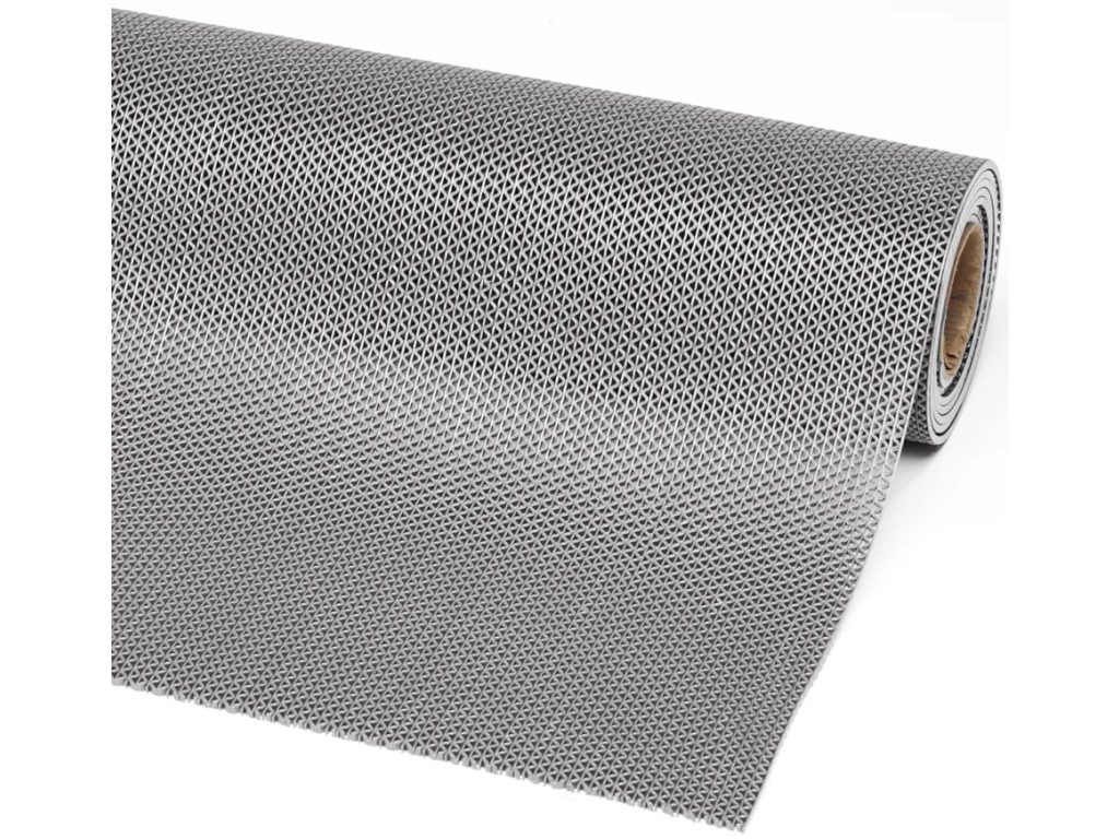 Členitý povrch výrazně zvyšuje bezpečnost chůze na mokrých podlahách. Otevřená struktura zároveň odvádí vodu okamžitě pryč a umožňuje rychlé vyschnutí – žádné nebezpečné kaluže pod nohama ani za nejintenzivnějšího provozu.