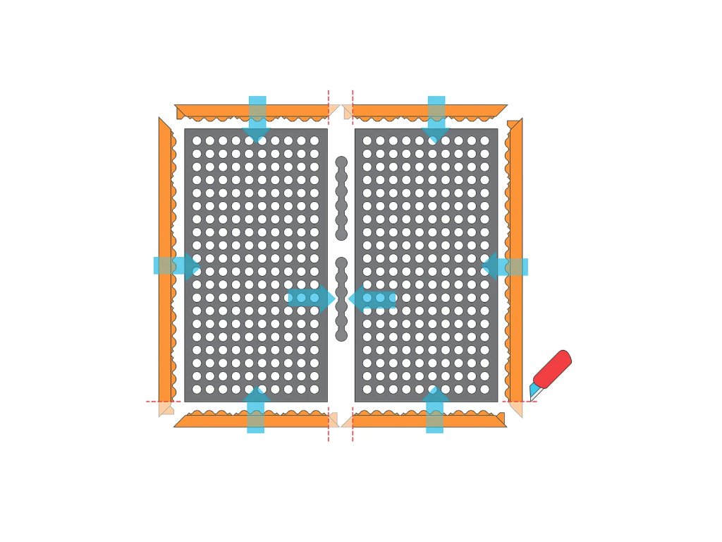 Rohož je kompatibilní se standardní náběhovou hranou 5,5 cm pro pohodlný a bezpečný vstup. Náběhové hrany jsou k dispozici ve třech barvách: žluté, oranžové a černé.